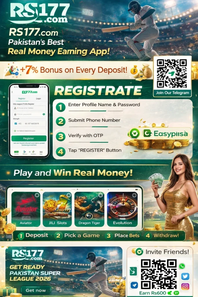 RS177 Game has rapidly become a popular platform for earning real money through online gaming in 2026. The game allows players to engage in a variety of games from the comfort of their home, requiring just a smartphone and an internet connection. This easy accessibility, combined with the low initial deposit of 500 PKR, makes it an attractive option for gamers in Pakistan and around the world.