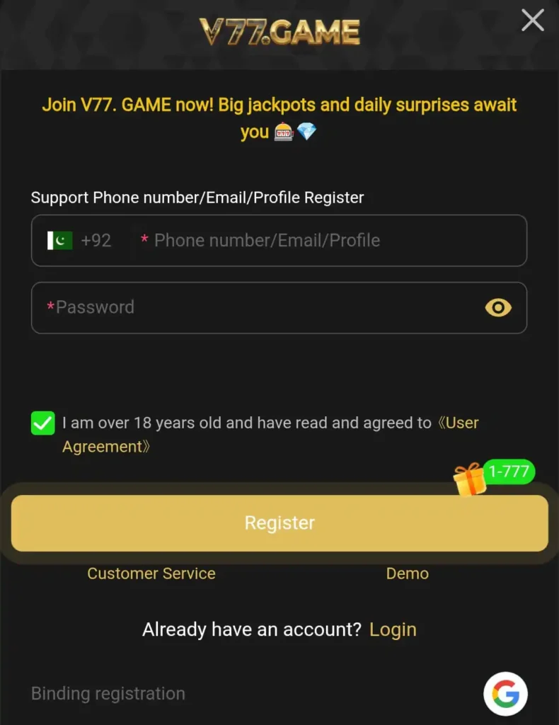 How to Register and Login on V77 Game?